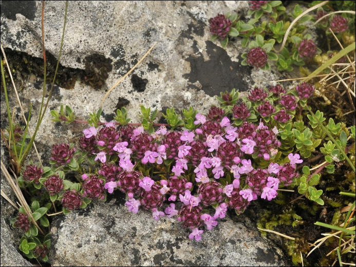 LEFT: Wild Thyme (Thymus polytrichuis) A common aromatic perennial creeping and woody under-shrub of dry limey places.
