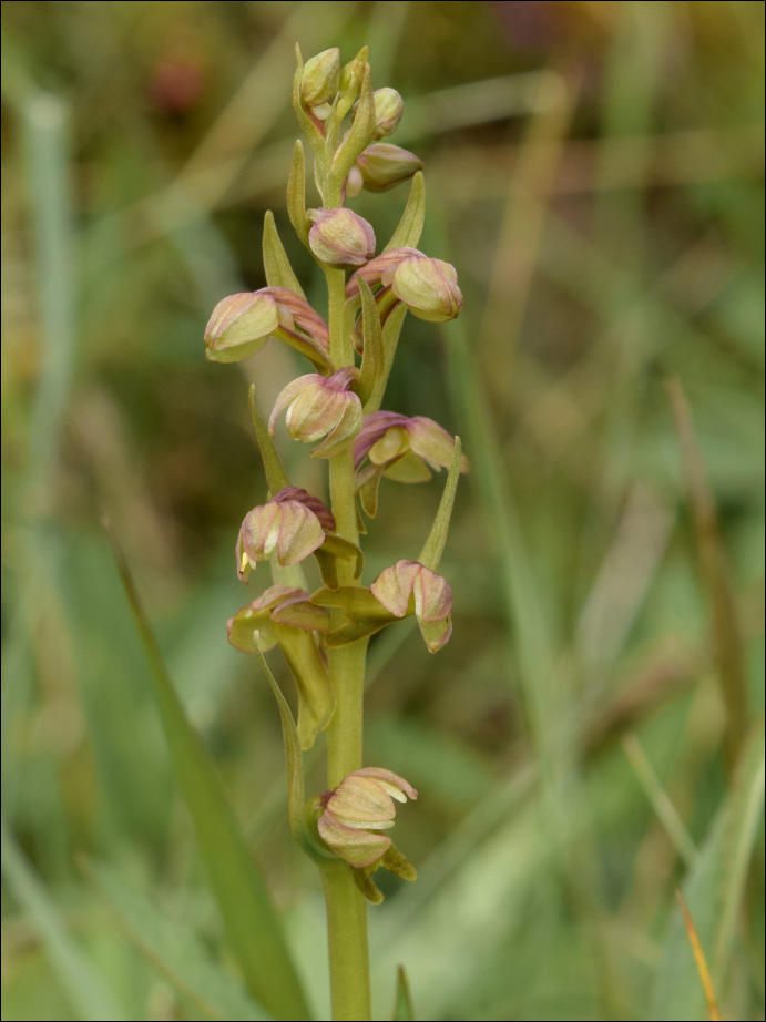 BELOW: The truly delightful, often missed, Frog Orchid (Coeloglussum viride). This can vary in colour but the typical pink
