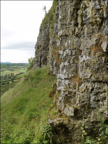 The limestone uplands of the Ceis and Bricklieve mountains are, on the other hand, largely covered. On Ceis the lower slopes are mainly shallow but rich grassland with many stunted trees, typically thorn, Hazel and other scrub. The